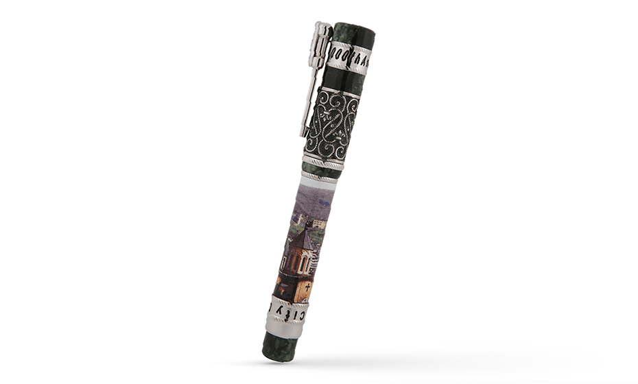 Ручка Derbent City 2000th Anniversary создана ко дню празднования юбилея древнейшего города России – Дербента. Ручку украшают выгравированные надписи, клип выполнен в форме кинжала, а на корпусе изображен пейзаж города Дербент. Нельзя не отметить традиционные орнаменты, выполненные в древних традициях, которые нашли свое место на колпачке ручки.